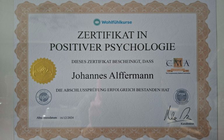 - Zertifiziert in Positiver Psychologie